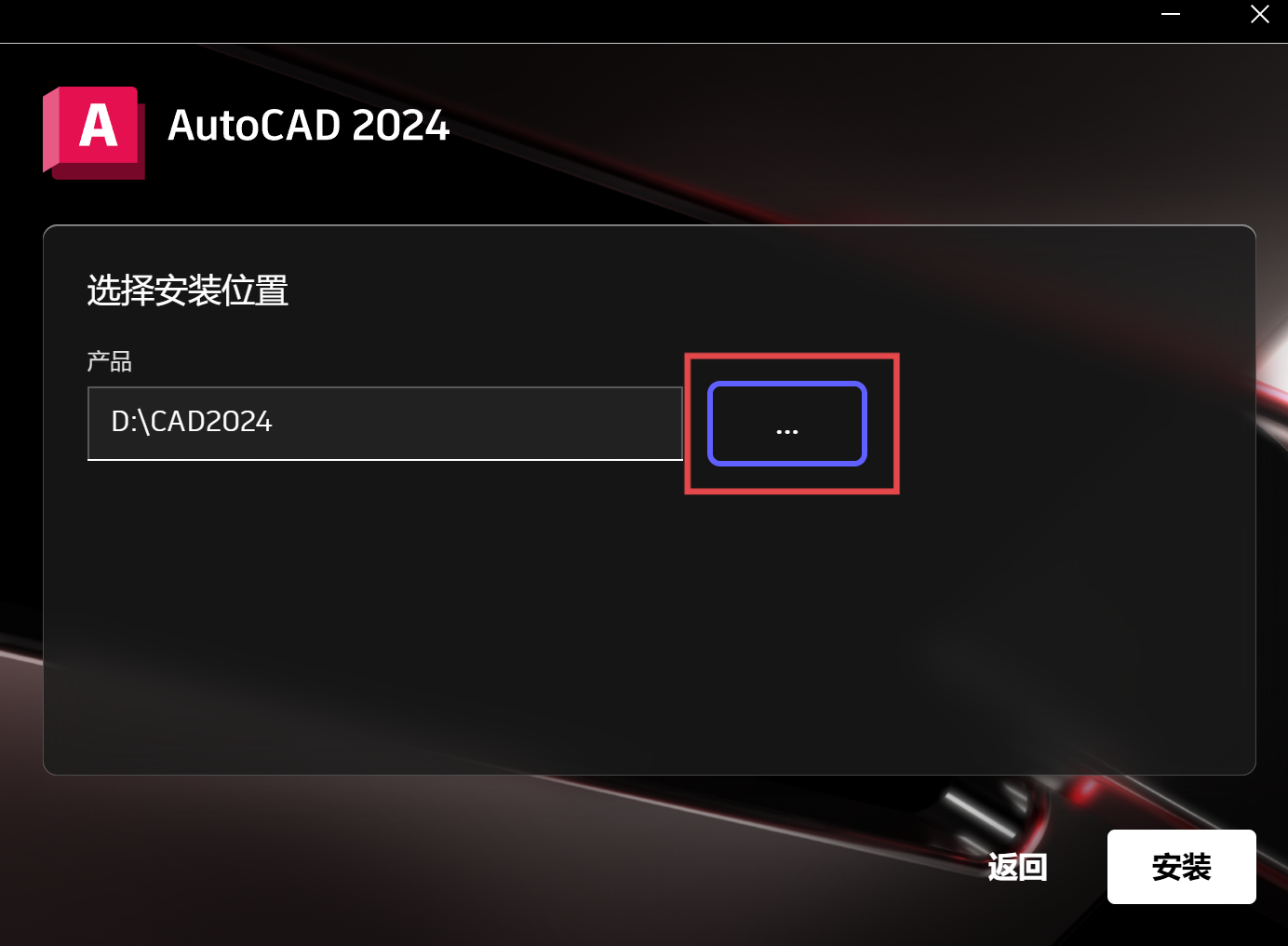 安装位置就新建一个文件夹CAD2024选择放在D盘