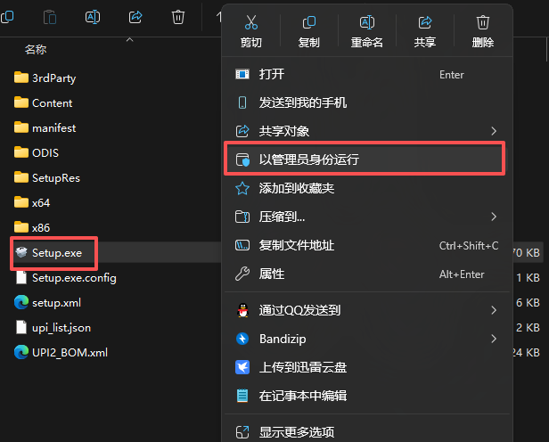2、打开解压出来的文件夹,找到【setup】,右键【以管理员身份运行】。