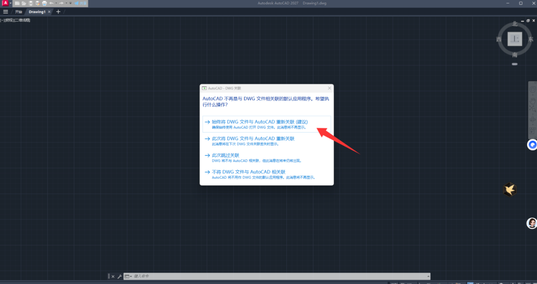 11、回到桌面双击启动CAD软件。选择与dwg文件关联。(如果没有出现不用理会它!)